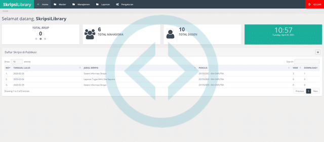 Untuk memudahkan managemen arsip skripsi seharusnya universitas menggunakan Source Code Aplikasi Perpustakaan Skripsi Berbasis Web...