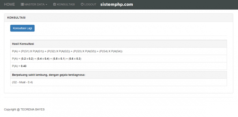 Sistem pakar penyakit lambung metode teorema bayes adalah alat yang berfungsi untuk mendiagnosa penyakit lambung...