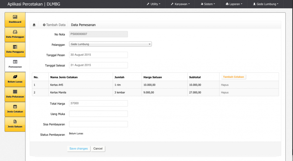 Aplikasi perpesanan dan percetakan ini merupakan salah satu sistem dengan source code php dan MySQL...