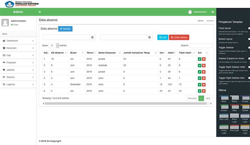 Salah satu fitur dalam source code aplikasi gaji karyawan php dan mysql menjadi tempat untuk data-data absensi karyawan selama periode tertentu.