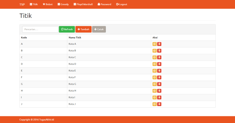 - Titik, fitur yang menyimpan lokasi atau titik pengguna berada. Fitur ini dibangun dengan menggunakan API Google Maps untuk mengenali kordinat dan nama tempat. Data lokasi akan otomatis tersimpan dalam sistem database mysql sebagai data untuk pengolahan selanjutnya.