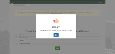 Di dalam kuis online berbasis web ini, akan menampilkan soal secara acak yang apabila dijawab dengan benar akan mendapatkan penambahan poin sebanyak 4 poin dan apabila salah Anda akan mendapatkan pengurangan pengurangan poin sebesar 1 poin.